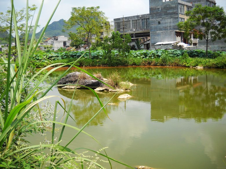 在壮家的聚居地,你很容易看到类似的池塘点缀在村庄各处。池塘一般养有鱼,例如四大家鱼,罗非鱼等,这些鱼连同河里的鱼同为当定人晚餐的加菜。打渔作为农家青年闲暇时候的娱乐,很受大家欢迎。