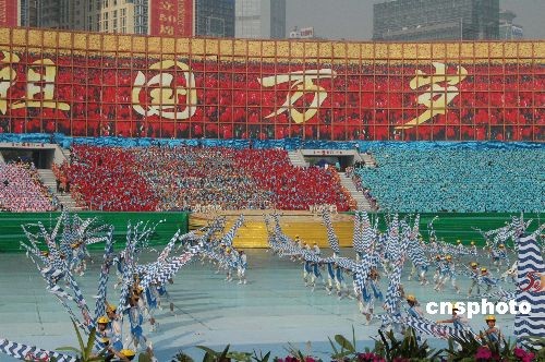 广西壮族自治区成立五十周年庆祝大会十二月十一日上午在广西首府南宁民歌广场隆重举行。周永康、张德江、司马义·铁力瓦尔地、杜青林、李兆焯、李继耐等全体中央代表团成员到会祝贺。中央党政军有关部门、内蒙古、西藏、宁夏、新疆自治区和广东省的负责人到会表示祝贺。庆祝大会上表演了盛大的具有浓郁壮乡风格的文艺节目。