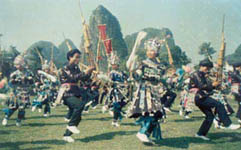 广西融水苗族的踩堂芦笙舞以场面盛大、壮观而闻名。在宽阔的踩堂坪上,常常几十支芦笙齐奏,数百甚至上千人共舞。