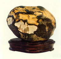 石玩是中国传统赏石文化的一个重要分支。何谓“赏石文化"?一切观赏天然奇石的行为、活动及其理论、原则、心得、感受之谓也。赏石文化不同于广义的“石文化",因为它不包括以各种石头为原材料的石制品、宝玉石及其开发、利用、加工制作技艺与理论。赏石行为的观赏对象仅限于天然奇石,其主要功能是为了满足人们审美、观赏的精神需要,一般很少具备实际使用价值。天然奇石按其可移动性又可大别为:大自然中的奇峰怪石;建筑物所处环境中人工点缀的造园景石;建筑物厅堂中、几案上、人们衣袋内供观赏、把玩的石玩二大类群。奇峰怪石属自然山水的精华,是不可移动的;景石虽体量较大,但仍可移动,不过也只能置诸室外,用于造景;只有“石玩”一类乃天然奇石之体量较小而精巧者,才可登堂入室,或供人赏玩于股掌之间。故从空间角度论,石玩也可称之为室内赏石艺术,属赏石文化的精华部分。