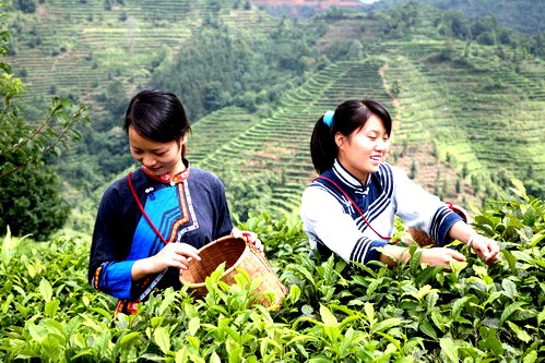 百色凌云县茶山上-美丽的采茶妹茶山放歌