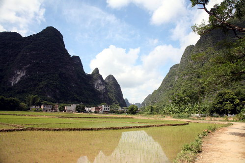 大新县,位于广西西北部,西与越南接壤。德天瀑布、明仕田园、黑水河在其境内。
