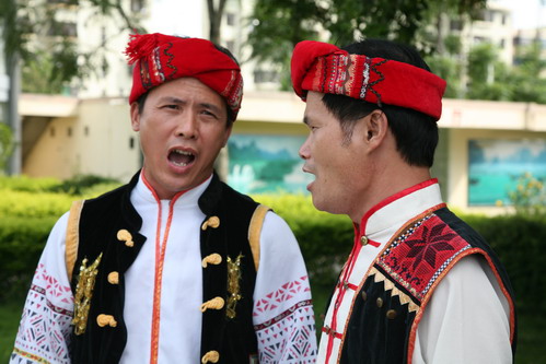 大新县壮族高腔民歌,以其音调高亢响亮及和谐的二重唱法特点,在广西山歌中独树一帜。大新高腔民歌也称为“诗雷”(壮语:最高、最响、最美之意)。歌手们在表演中采用“斗唱”形式,一般沿用一男三女斗、二男八女斗、十男三十女斗等各种不同唱腔组合。大新高腔民歌———“诗雷”以该县龙门乡三联村为代表。龙门高腔山歌有几百年历史,群众基础深厚,当地上至60岁的老人,下至十几岁的小孩,都能信口拈来。高腔主要以男女对唱为表现形式,尤其是青年男女求爱的表达方式。