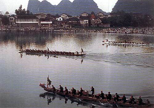 端午是桂林人的一个大节,除了悬挂艾叶和包粽子的风俗,自古以来,就有十年一大扒,五年一小扒的赛龙舟的风俗。每到龙舟赛时,哪怕大雨滂沱,两岸也照样满是观看龙舟赛的人们插在水中。赛场传出的鞭炮声似乎全城都能听见,解放桥上的民警不断提醒着行人不得在桥上停留,江边来往的公共汽车开始免费接送市民…… 不知道现在的龙舟赛是个什么样子,记忆中除了九二年那场罕见的雪,就只有龙舟赛能牵动几乎全城人的注意。