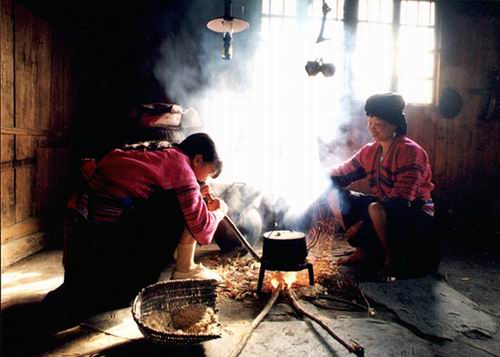 退回二十余年,在我爷爷奶奶的家里,也有这么一个火塘,永远烧着一釜热水。每每记得冬日的夜晚,很多的人聚在火塘边,火光映在大家的脸上,红扑扑的,在那欢歌笑谈中哪怕是深雪的日子也不会感到寒冷。现在爷爷奶奶早已经一起在一个高山的地下,那个火塘也早已荒废,再没有火光从那里出来映在谁的脸上。