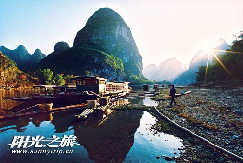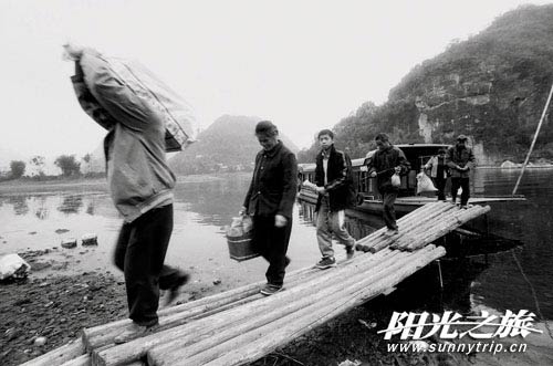 漓江上的船家,除捕鱼运货为生外,还有另一个不可推卸的职责,就是在每一个行人众多的繁华码头,为来往行人摆渡。